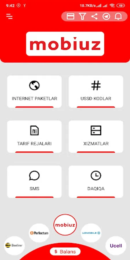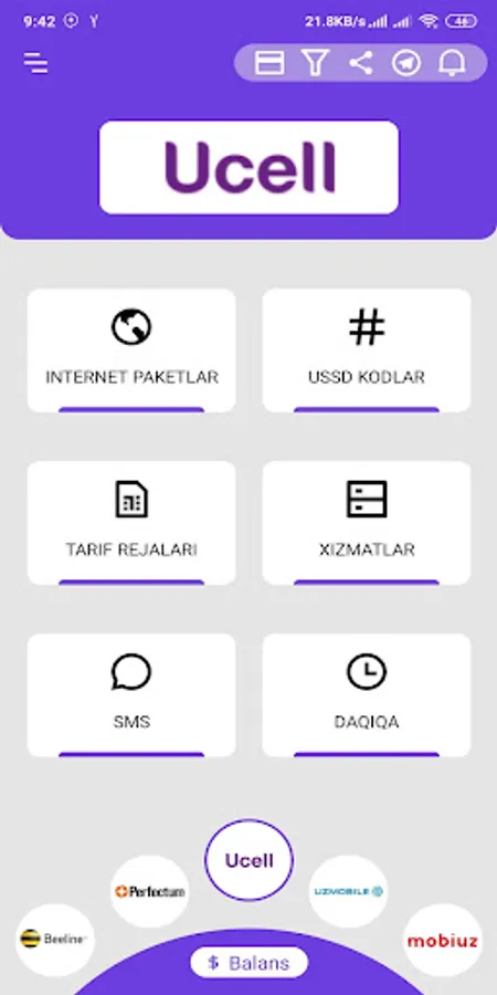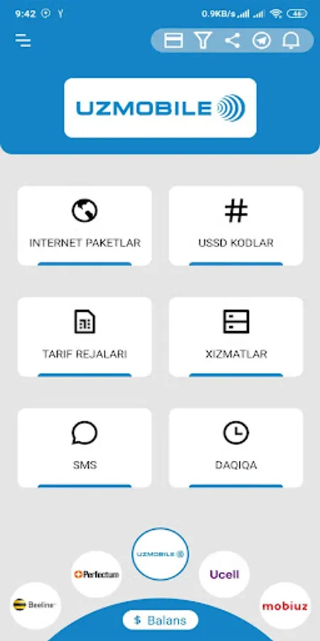 Uzmobile Plus USSD kodlar 2020 dasturni o'rnatganingizdan so'ng O'zbekiston mobil aloqa operatorlari UMS Mobiuz Uzmobile Ucell Beeline va Perfectum haqida barcha savollaringizga javoblar olasiz va quyidagi imkoniyatlarga ega bolas