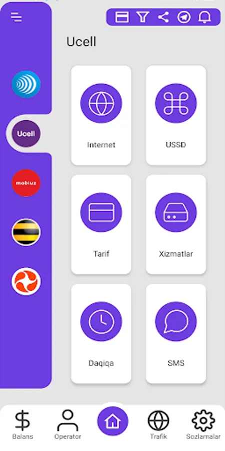 By installing the application you will receive answers to all questions and the following opportunities from mobile operators of Uzbekistan - Mobiuz - Mobiuz, UMS - UMS, Uzmobile - Uzmobayl, Ucell - Usel, Beeline Beeline and Perfectum - Perfectum: