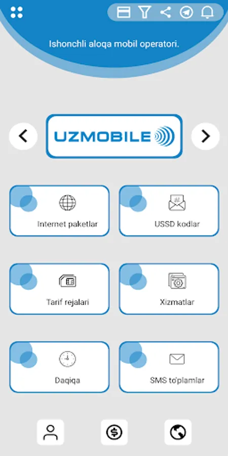 By installing the application you will receive answers to all questions and the following opportunities from mobile operators of Uzbekistan - UMS - UMS, Uzmobile - Uzmobayl, Ucell - Usel, Beeline Beeline and Perfectum - Perfectum: