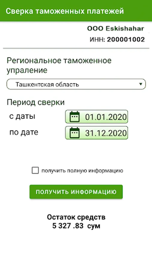Obtaining information on funds on the deposit of the customs authorities of the Republic of Uzbekistan and uploading a reconciliation report on customs payments via the Internet in real time.