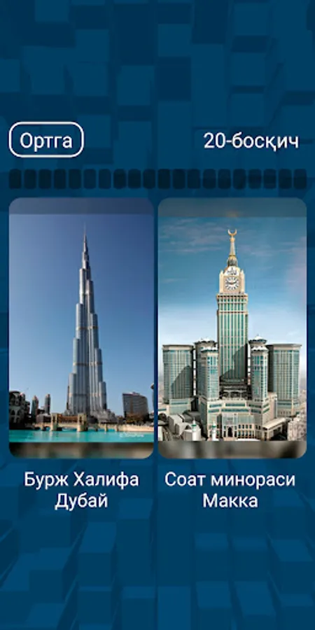 Ҳar bir bosқich yakunida қiziқarli faklar kўrsatib ўtiladi va keyingi bosқich uchun rukhsat ochiladi.