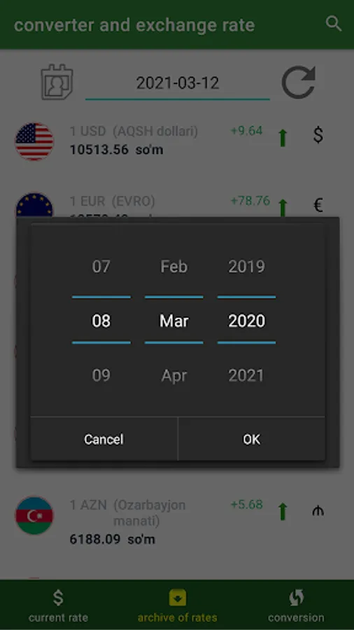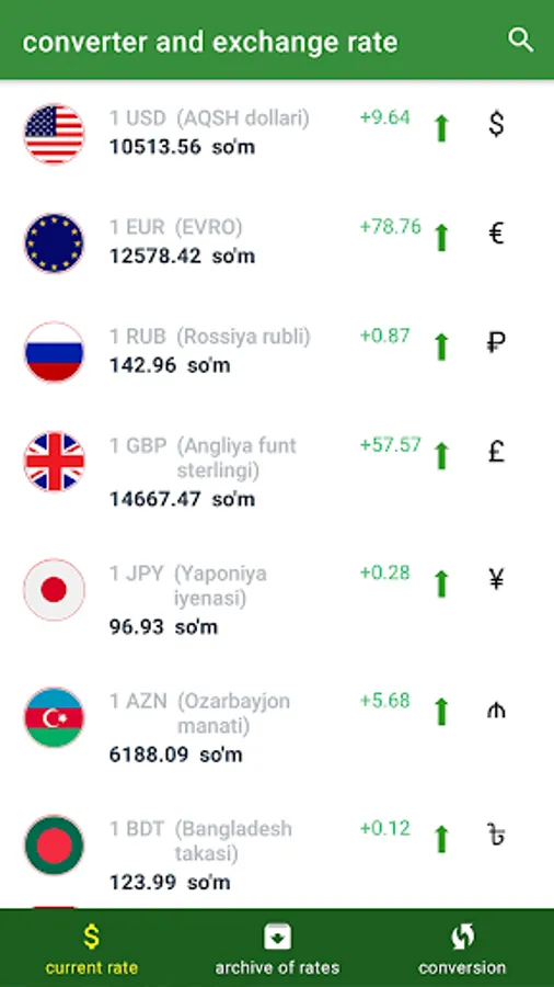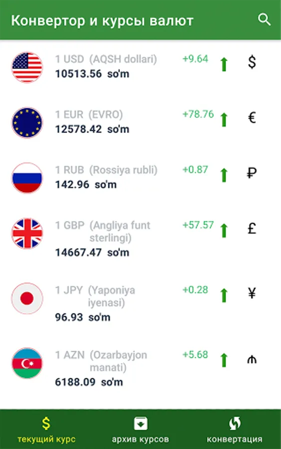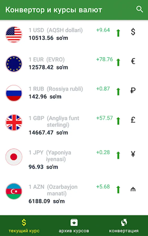 Converter, exchange rates and archive of exchange rates of the Central Bank of the Republic of Uzbekistan.