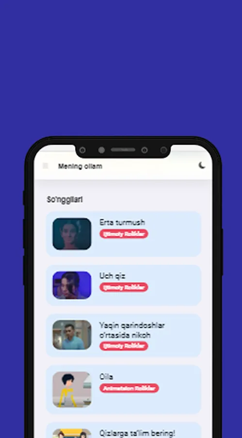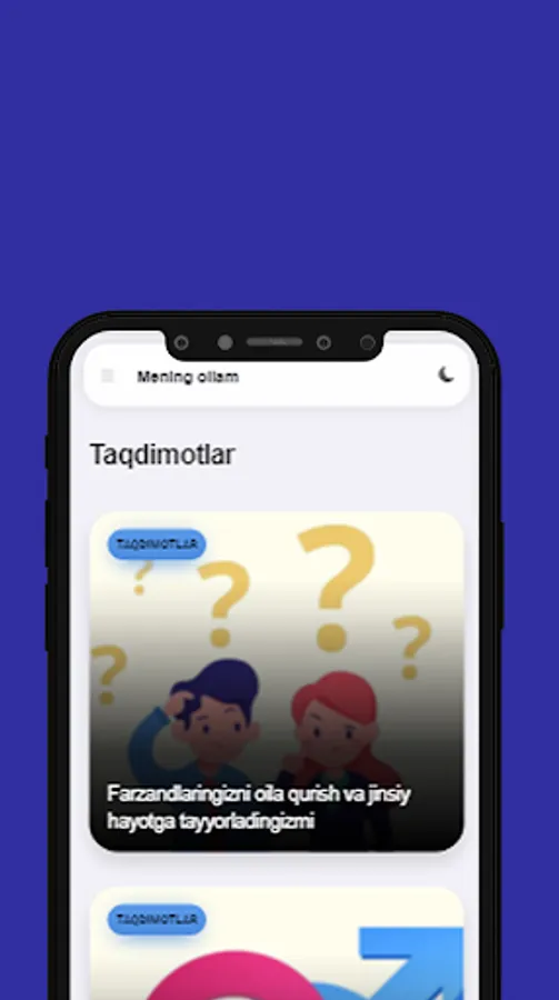 The mobile application "My Family" was developed by the Research Institute "Family and Women" under the State Committee for Family and Women Affairs of the Republic of Uzbekistan under the Ministry of Innovative Development A-OM-2021-550 - "Early marriages and early births" in the Republic of Uzbekistan and a family created in as part of a practical project to create multimedia products for the elimination of divorce.