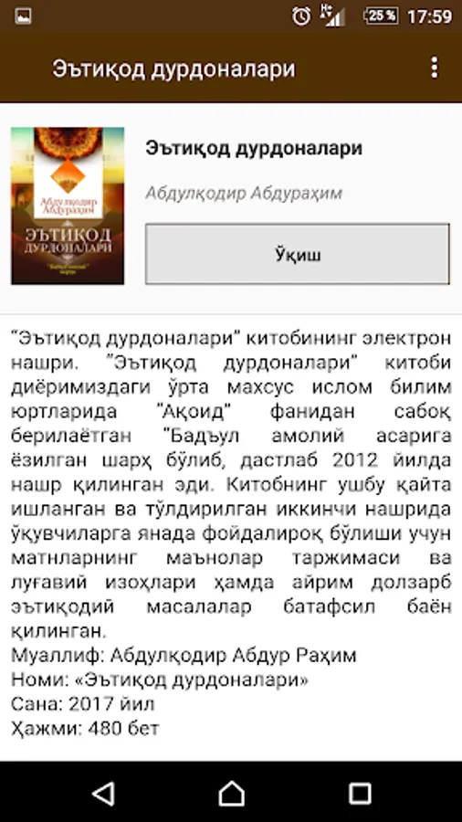 "Etiқod durdonalari" whaling diorimizdagi ўrta Makhsus Islom bilim yurtlarida "Aқoid" fanidan saboқ berilaotgan "Badul Amol" asariga ozilgan sharҳ bўlib, dastlab 2012 yilda nashr қilingan Edie. Kitobning Ushba қayta ishlangan wa tўldirilgan ikkinchi nashrida ўқuvchilarga yanada foydaliroқ bўlishi Uchun matnlarning manolar tarzhimasi wa luғavy izoҳlari ҳamda ayrim dolzarb etiқody masalalar batafsil baon қilingan.