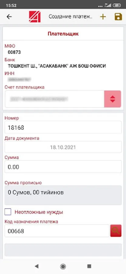 Asaka Business is an official mobile system for providing remote banking services to legal entities - customers of Asaka Bank. This system allows you to make the following banking transactions via mobile communication: