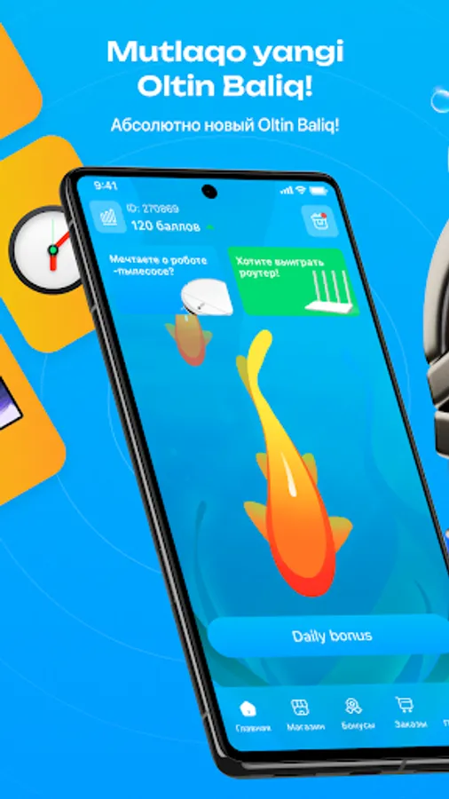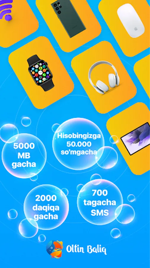 Oltin Baliq - UZTELECOM abonentlari uchun har kuni muloqot resurslari, hisob to'ldirilishi va qimmatbaho sovg'alarni qo'lga kiritish imkoniyati.