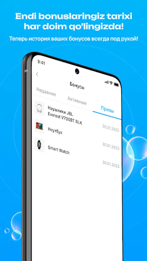 У вас есть возможность получить 5 000 МБ, 2 000 минут для звонков по Узбекистану и 700 SMS, а также ценные призы и до 50 000 сумов на баланс.