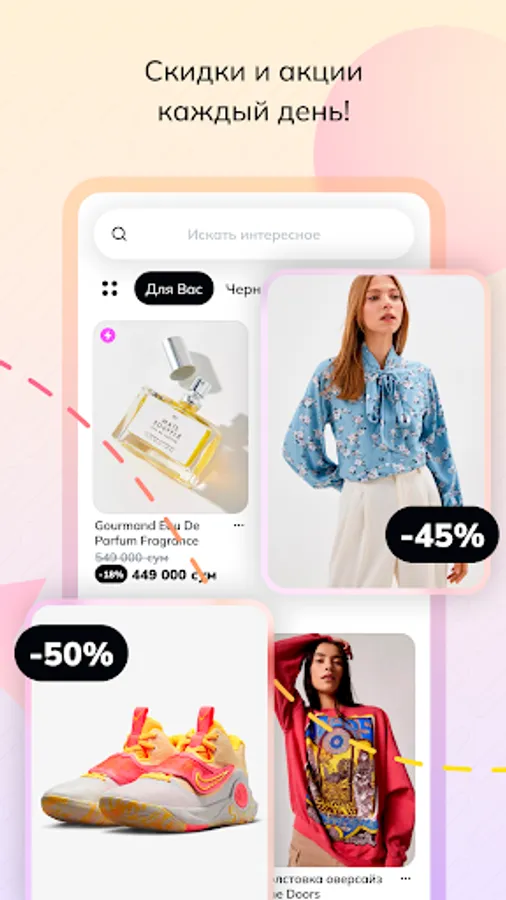 1. Tovarlarni qiziqishlaringiz va so'nggi trendlarga moslab tanlash. Flymart tovarlarni sizning qiziqishlaringizga to'liq moslashtiradi, shuningdek, eng so'nggi moda trendlarini taklif qiladi. Bizning marketpleysimiz ko'plab sotuvchilardan tovarlarning keng tanlovini taklif etadi, bu sizga noyob va eksklyuziv takliflarni topish imkonini beradi.