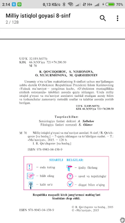 uyida chop etildi. 100129. Òoshkent, Navoiy ko‘chasi, 30-uy, 2015.
