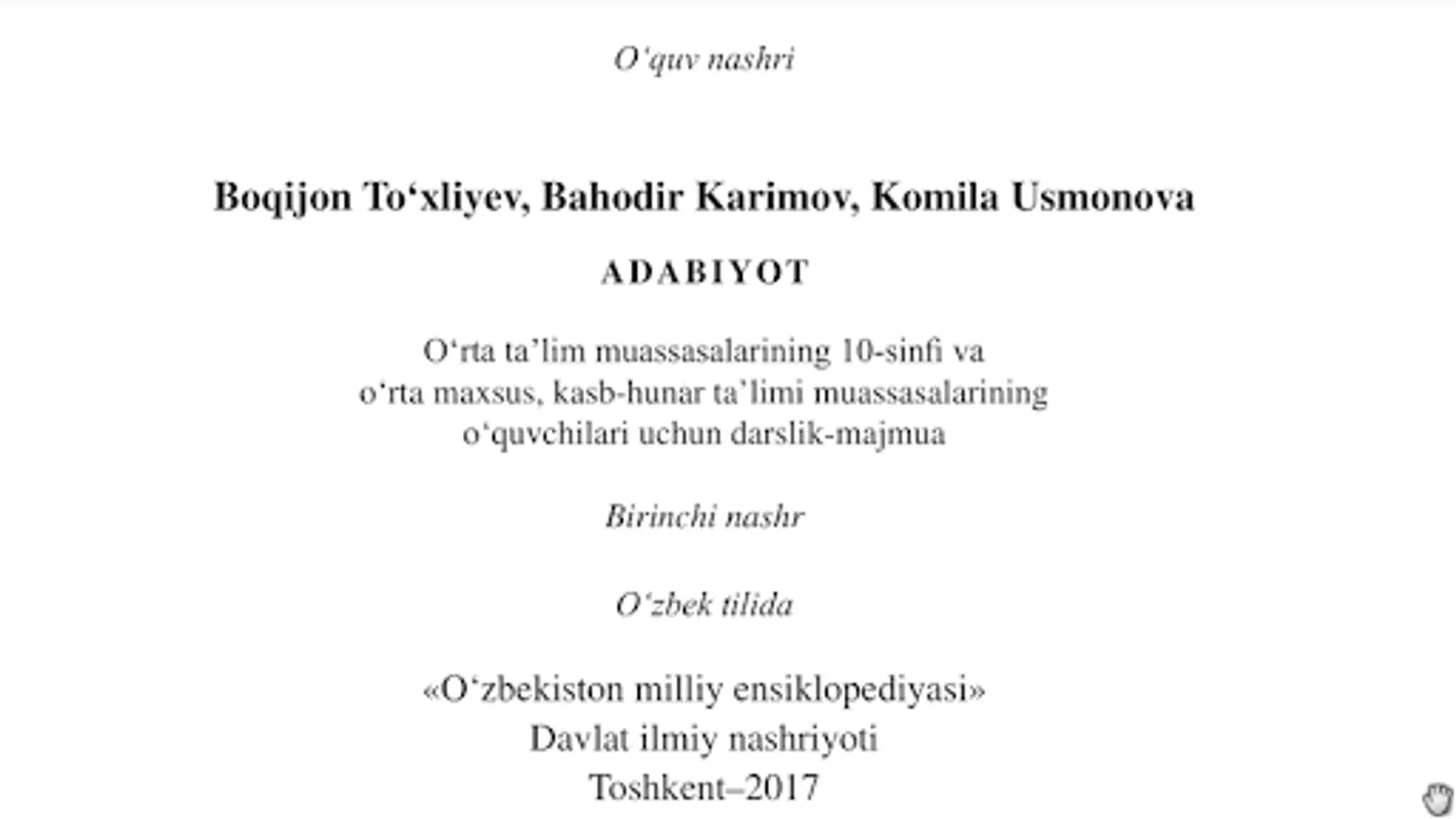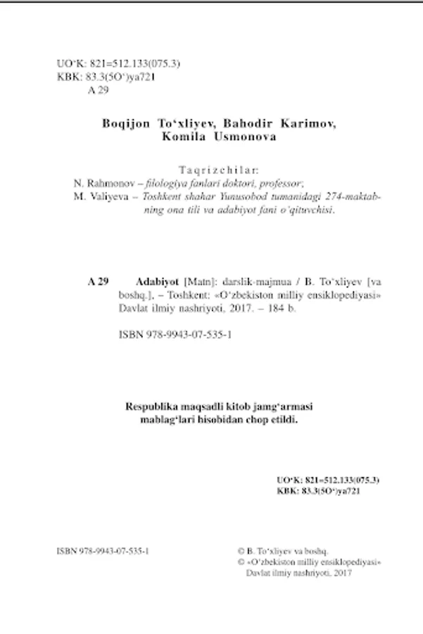O'zbekiston Respublikasi Xalq ta'limi vazirligi tasdiqlagan