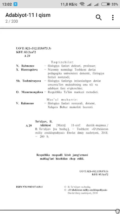 o'rta maxsus, kasb-hunar ta'limi muassasalarining o'quvchilari uchun darslik-majmua Birinchi nashr