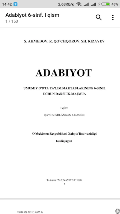 A 98 Adabiyot [Matn] Q. 1. / S. Ahmedov, R. Qo'chqorov,