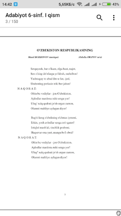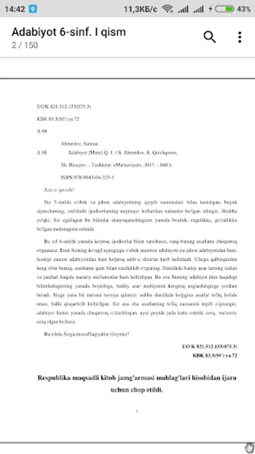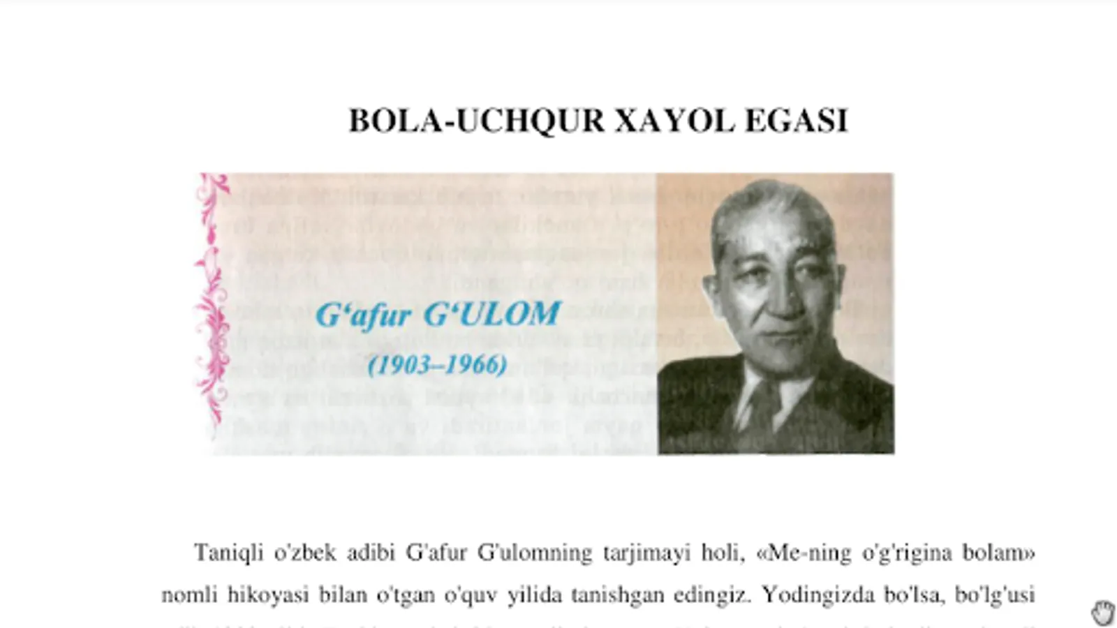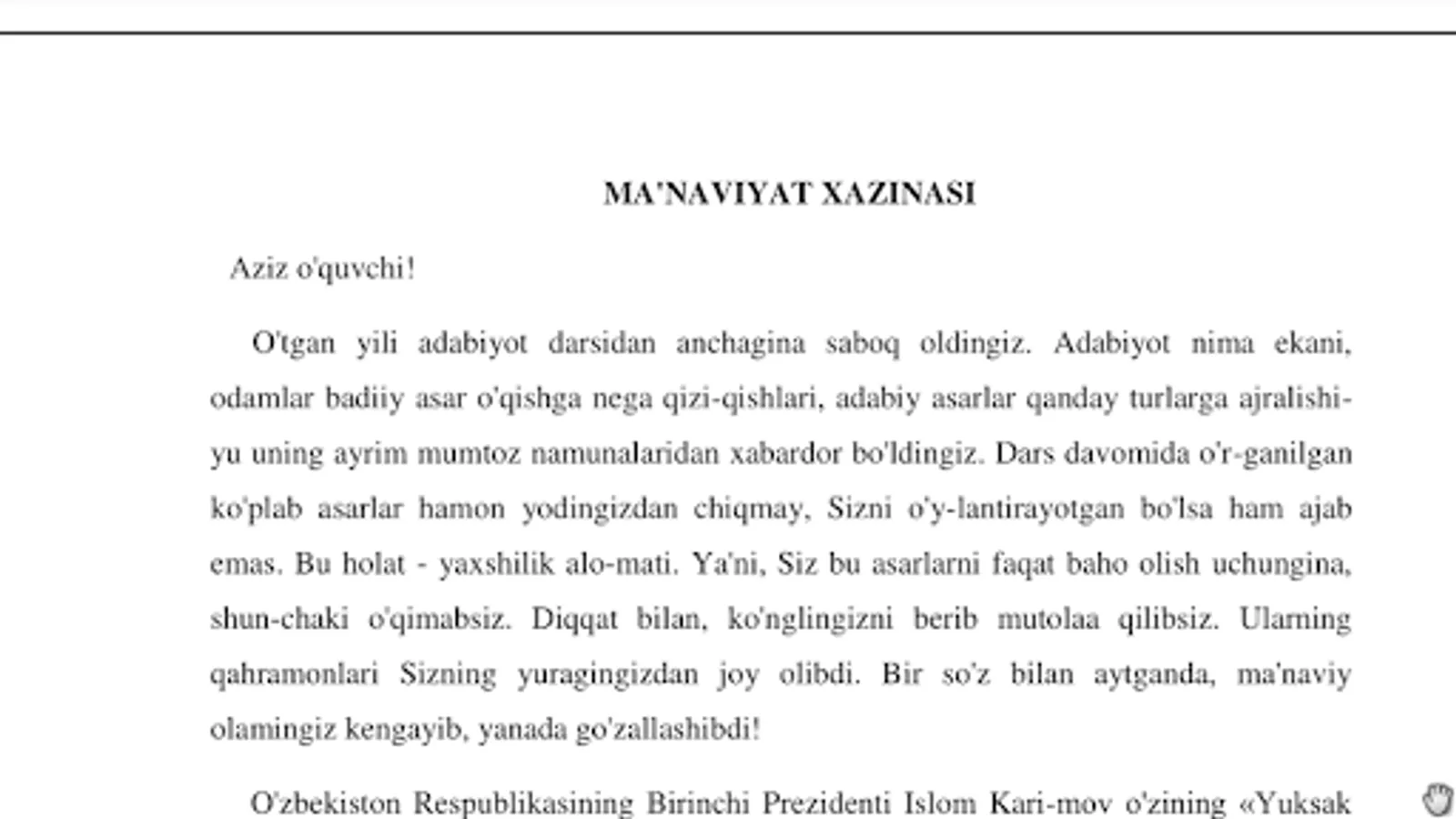 Siz 5-sinfda o'zbek va jahon adabiyotining ajoyib namunalari bilan tanishgan, buyuk siymolarning, iste'dodli ijodkorlarning tarjimayi hollaridan xabardor bo'lgan edingiz. Shubha yo'qki, Siz egallagan bu bilimlar dunyoqarashingizni yanada boyitdi, ezgulikka, go'zallikka bo'lgan mehringizni oshirdi.
