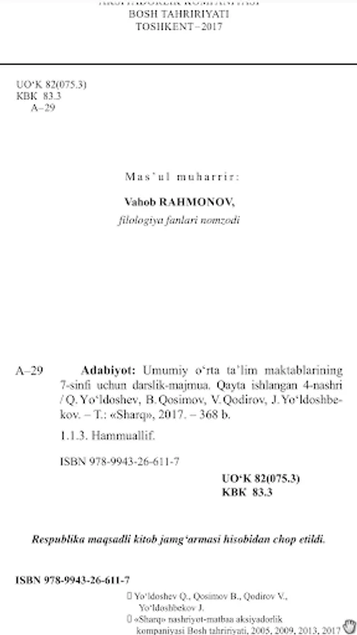 Qayta ishlangan 4-nashri O'zbekiston Respublikasi Xalq ta'limi vazirligi