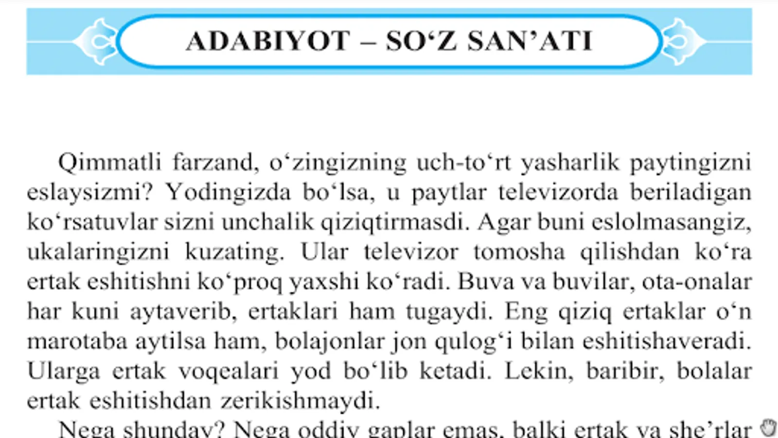 Adabiyot: Umumiy o'rta ta'lim maktablarining