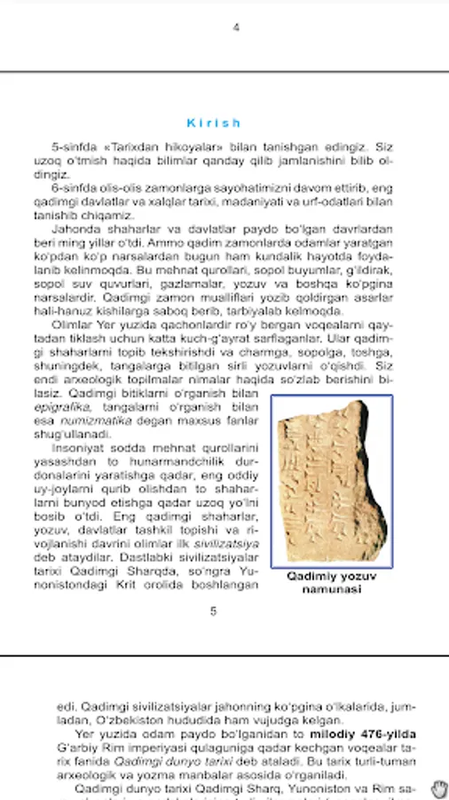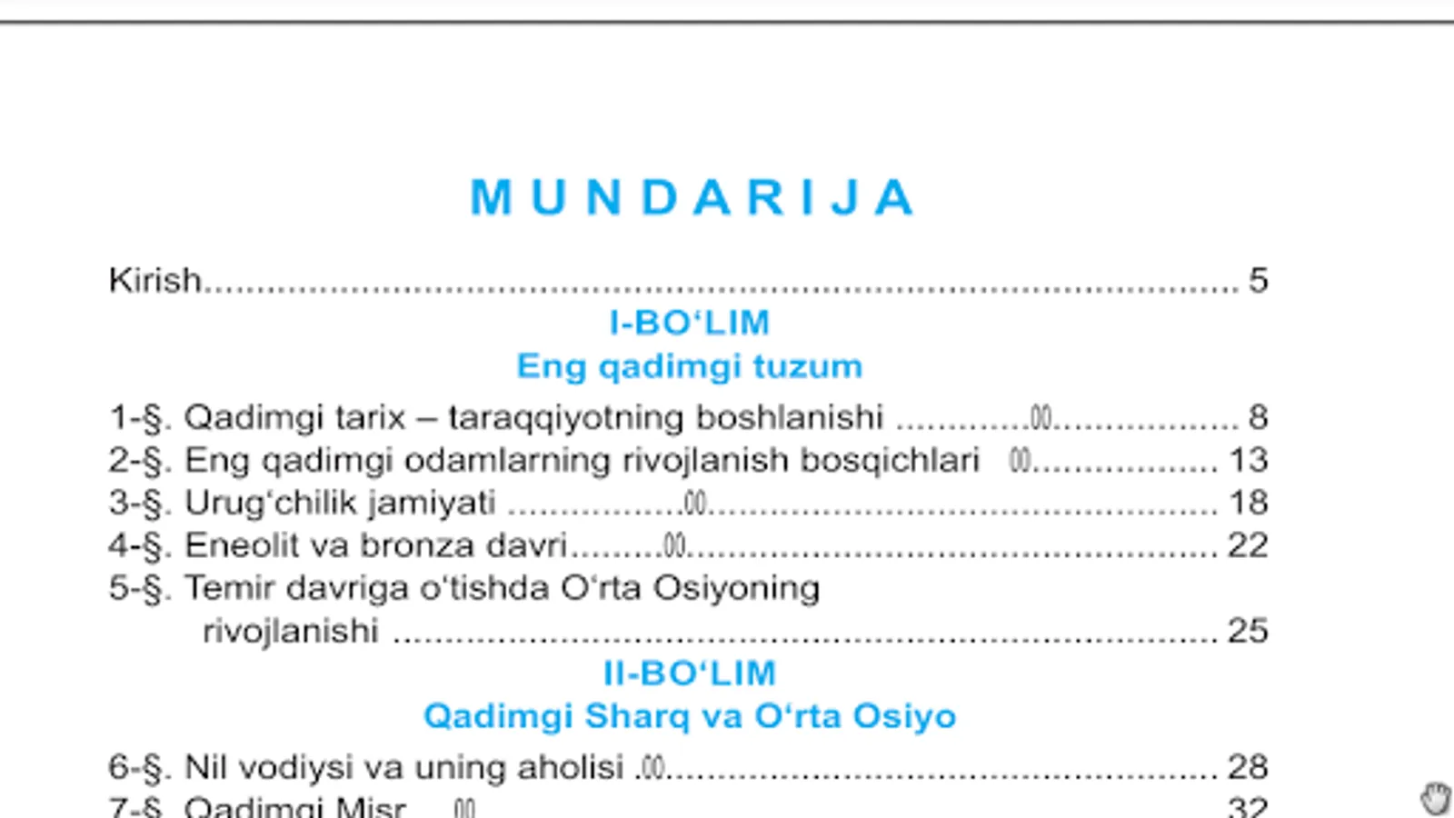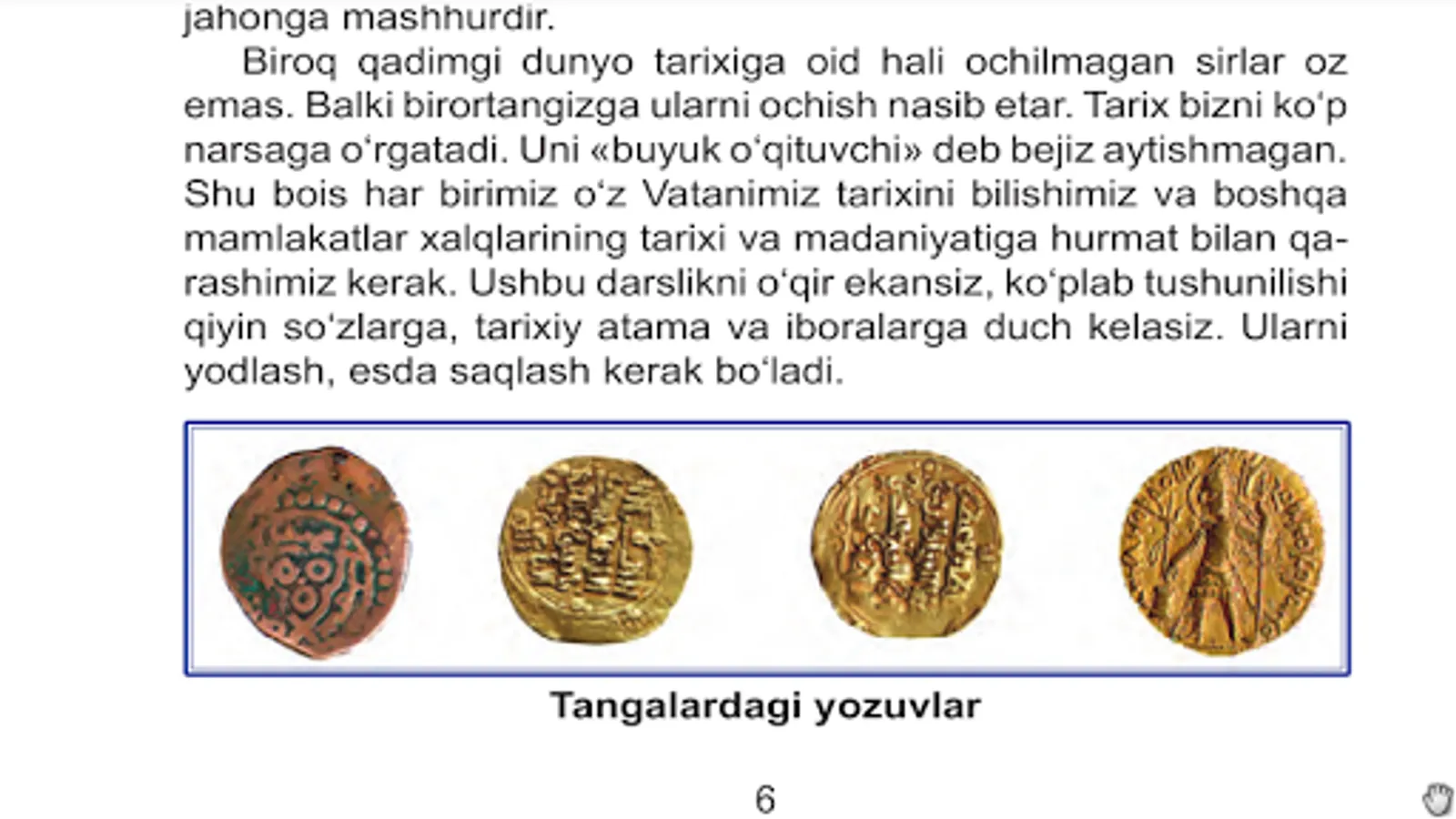 «Yangiyo'l Poligraf Servis» Toshkent - 2017. Tarix. Qadimgi dunyo 6-sinf: umumiy o'rta ta'lim maktablarining 6-sinfi uchun darslik / A. Sagdullayev, V. Kostetskiy. - Tuzatilgan va to'ldirilgan beshinchi nashr. - Toshkent .: «Yangiyo'l poligraf servis», 2017. 192 b.