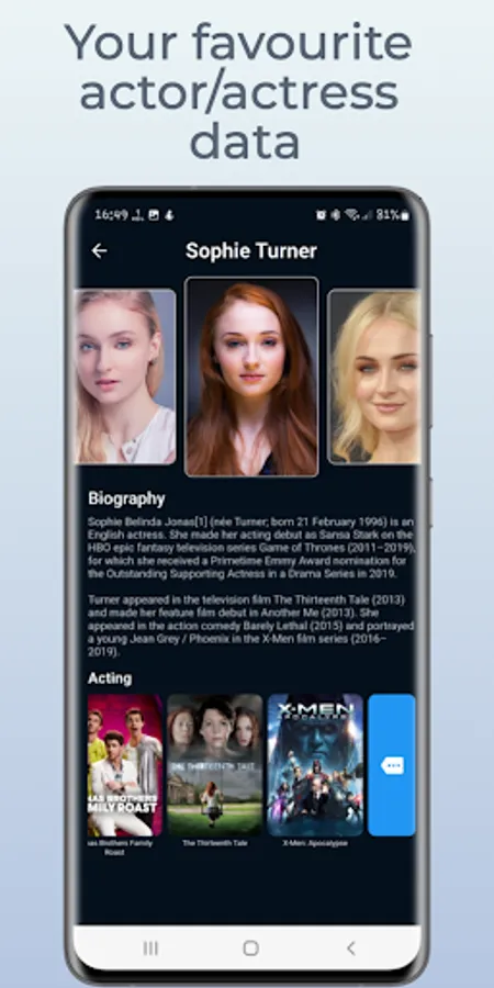 This application shows information about movies, series and actors from the API provided by https://www.themoviedb.org.