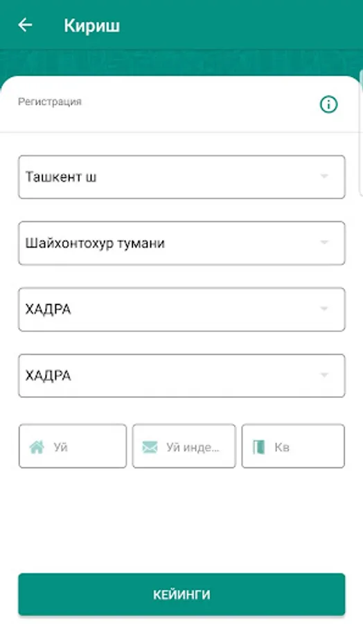 - registration on a personal account and address;