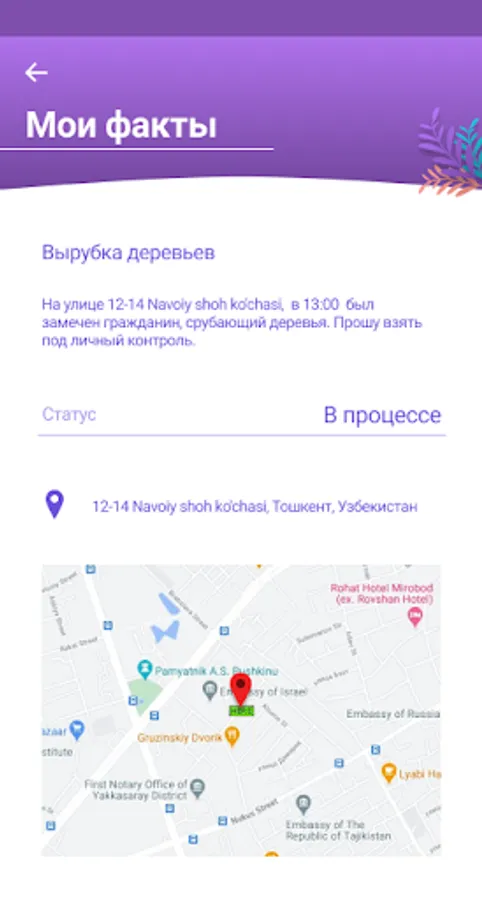 An automated mobile application that allows you to record violators in the field of ecology, the Republic of Uzbekistan.