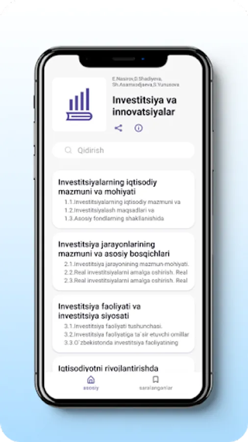 Mazkur darslik oliy o’quv yurtlarining iqtisodiy yo’nalishida o’qiyotgan bakalavr, magistrantlariga, mustaqil tadqiqotchilar,professor o’qituvchilar va investitsiya sohasiga qiziquvchi hamda shug’ullanuvchilarga mo’ljallangan.