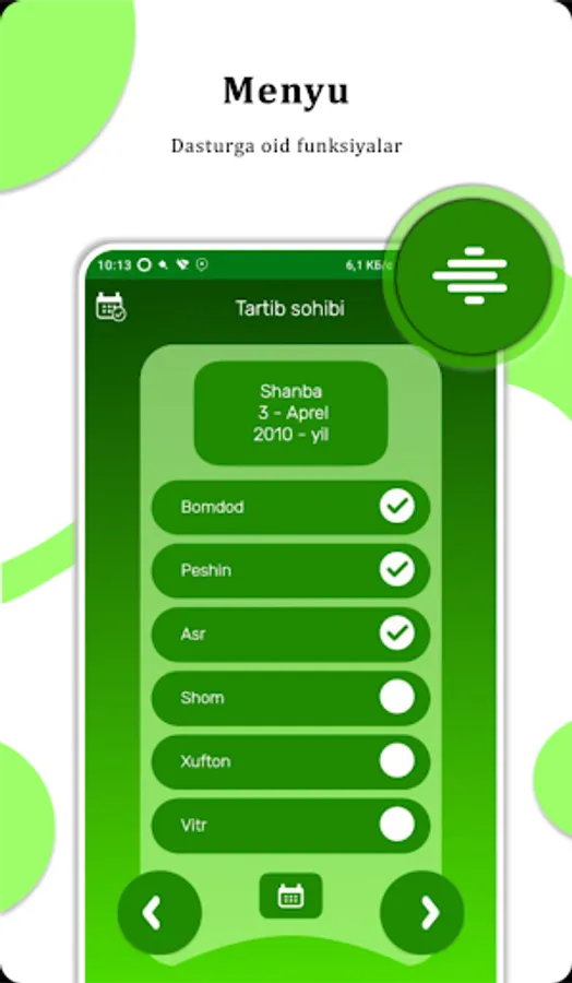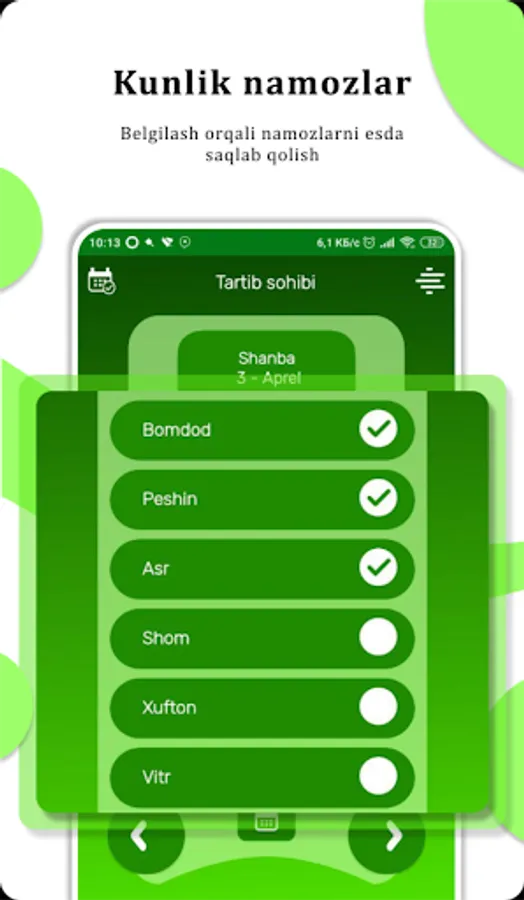 Tartib sohibi - bir necha yil yoki umr mobaynida o'qilmay qolgan namozlarni tartibli o'qib borish uchun mo'ljallangan raqamli kundalikdir!