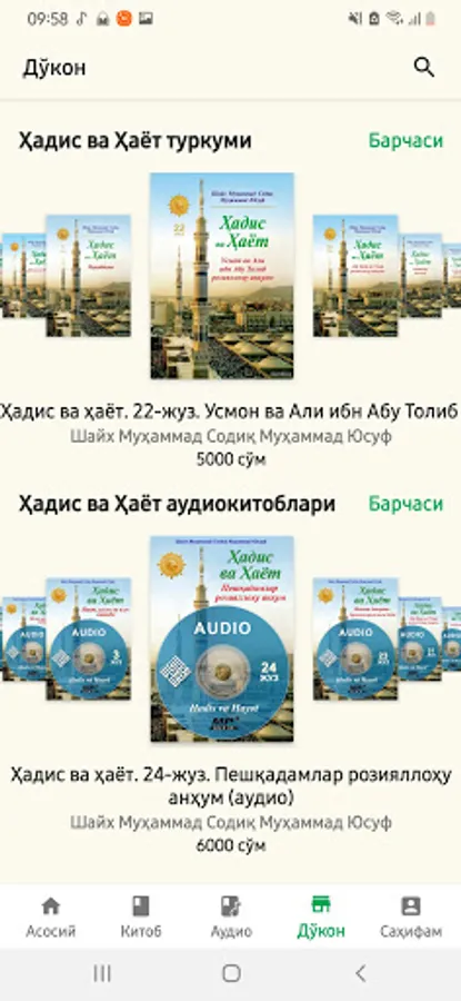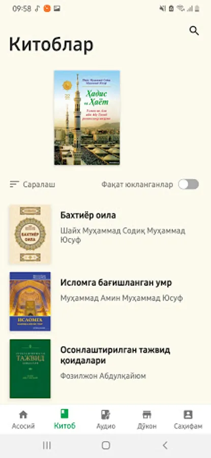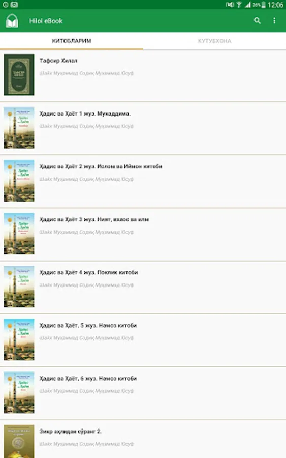 From our website e-hilolnashr.uz You can buy ebooks in uzbek and russian languages from publishing house "HILOL NASHR", including the world-famous scientist, spiritual teacher and public figure Sheikh Muhammad Sadik Muhammad Yusuf. In his works is given a clear and objective view of Islam. It reflects the broadest knowledge of the Islamic sciences and the history of the Muslim society.