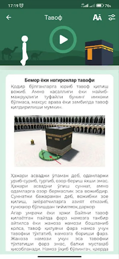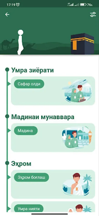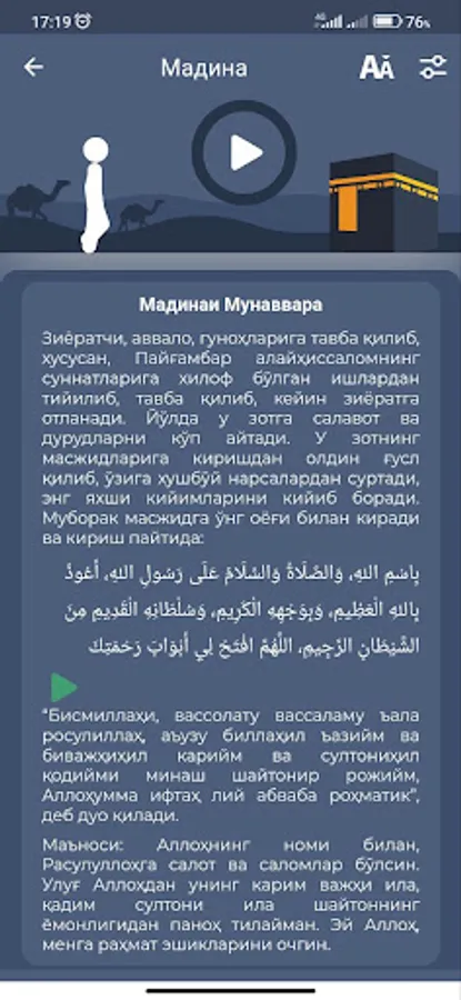 Ушбу илова Hilol Nashr ва islom.uz ҳамкорлигида мўмин-мусулмон юртдошларимиз учун ҳаж ва умра ибодатларини шариат кўрсатмалари бўйича мукаммал адо этишлари мақсадида ишлаб чиқилган. Дастурда ҳаж ва умра давомида айтиладиган зикр ва дуоларнинг арабий матни, ўқилиши ва таржималари интерактив усулда берилган.
