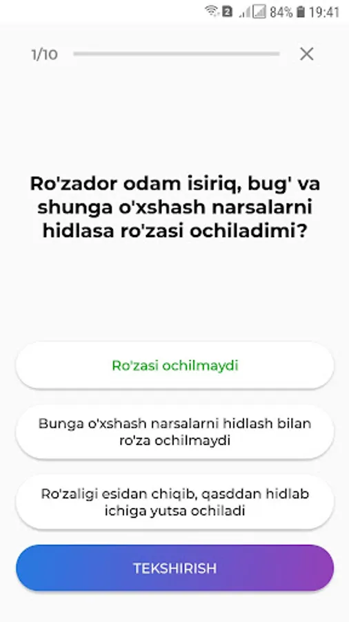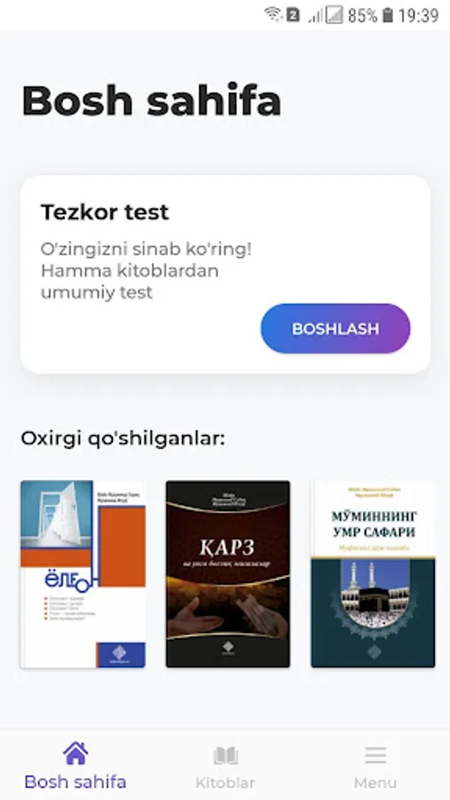 Hilol Test - shayh Muhammad Sodiq Muhammad Yusuf hazratlarining kitoblari asosida tuzilgan savol-javob dasturi bo'lib, unda o'qigan kitoblaringiz asosida o'z bilimingizni sinab ko'rishingiz mumkin