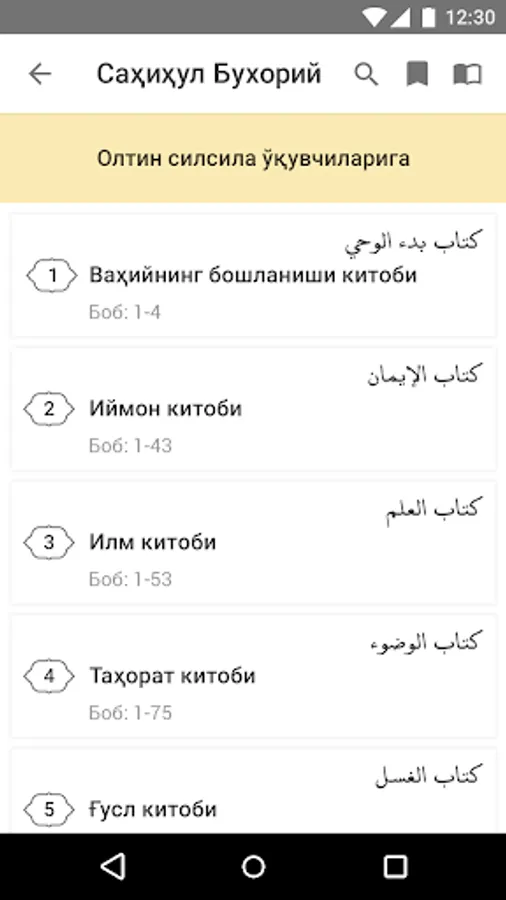 "Oltin silsila" mazhmuasi dasturining beta versioncy. Ushbu dasturga uyidagi saҳiҳ tўplamlar kiradi: