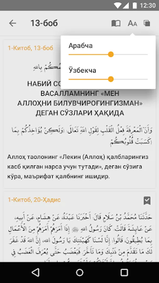 Islom olamida mashҳur tiz ҳadis tўplamining shaikh Muҳammad Sodiқ Muҳammad Yusufning tashabbuslari bilan va bevosita nazoratlari ostida tayerlangan ўzbekcha tarzhimasining electron dasturi.