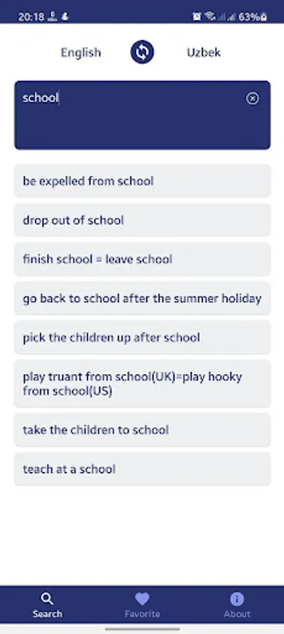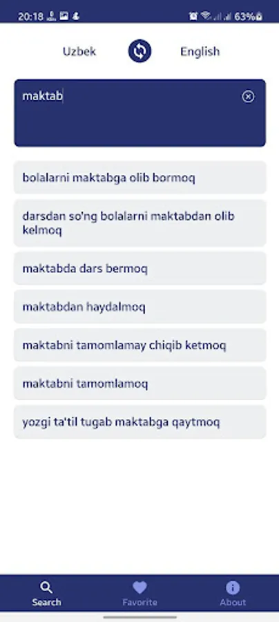 Uzbek English Collocations Screenshots