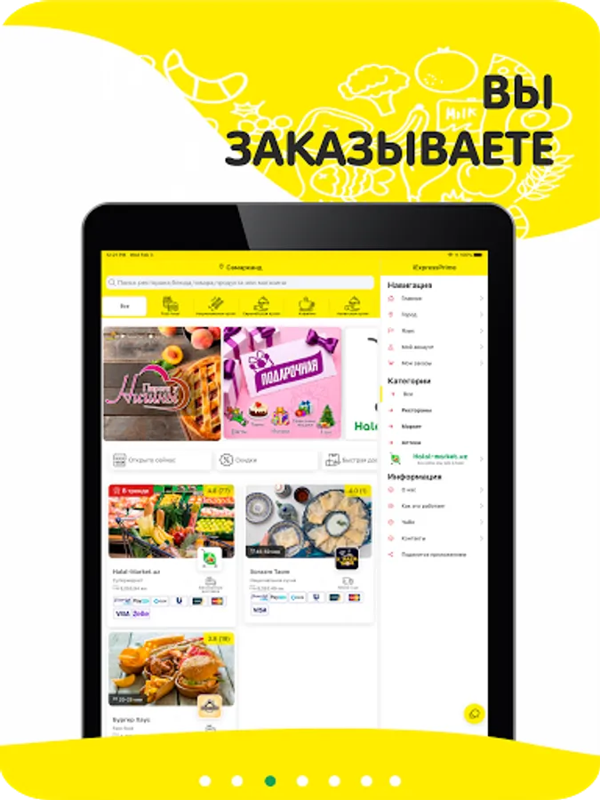 We have created a single modern and very convenient online platform (platform) for grocery markets, grocery stores, restaurants / catering, that is, an online “bazaar”.