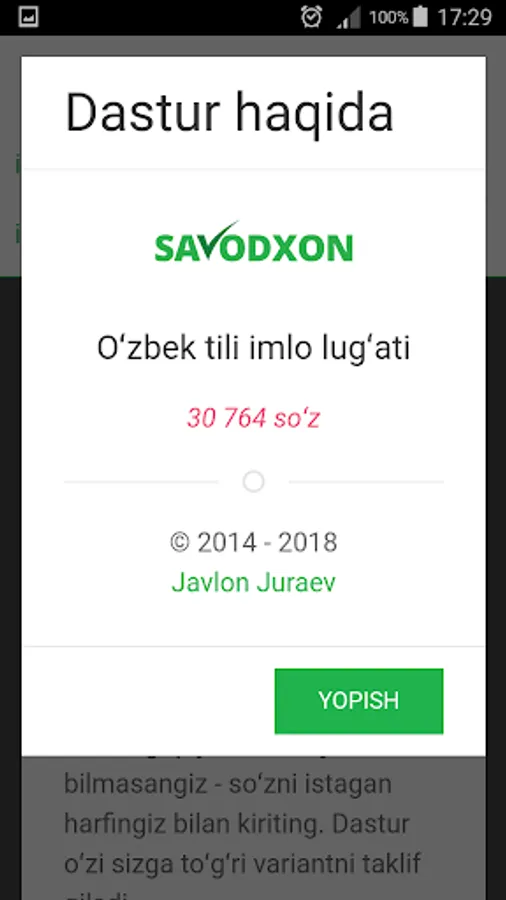 Ushbu ilova ustida ish olib borilmaydi. Izohli lug'atdan foydalanishingizni tavsiya qilamiz.
