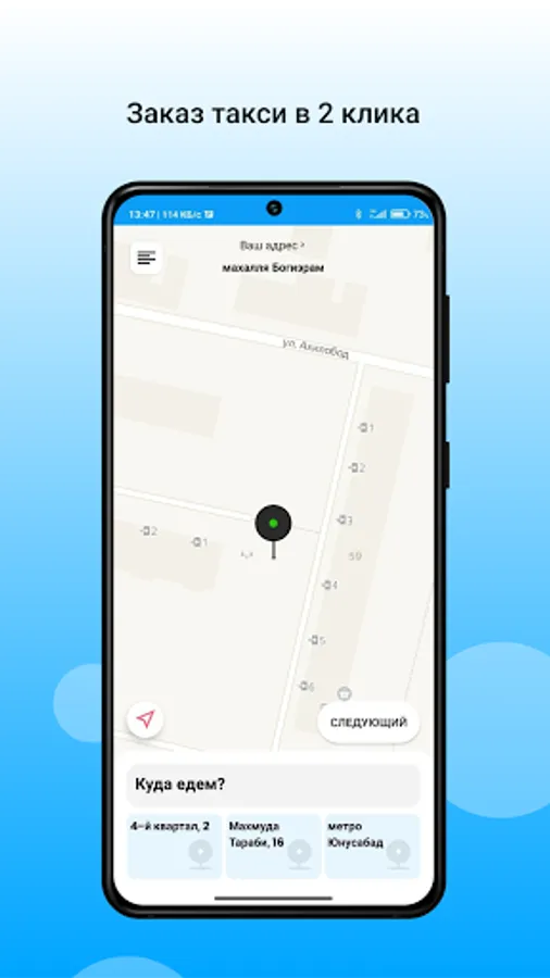 Заказывайте машину в один клик при помощи шаблонов, адресов - ваше местоположение Dyod определит автоматически.