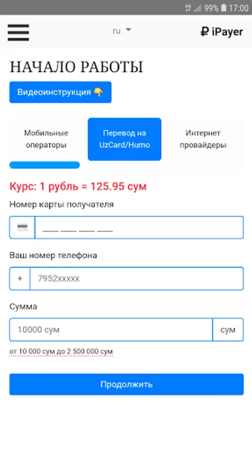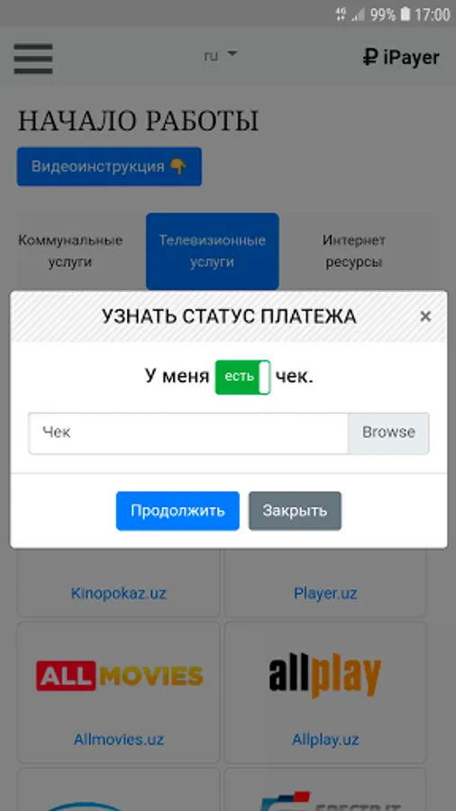 iPayer (iPaynet) is a modern and secure system for paying for mobile communications, Internet, IPTV and also other services of Uzbekistan. This application is created for living and working abroad.
