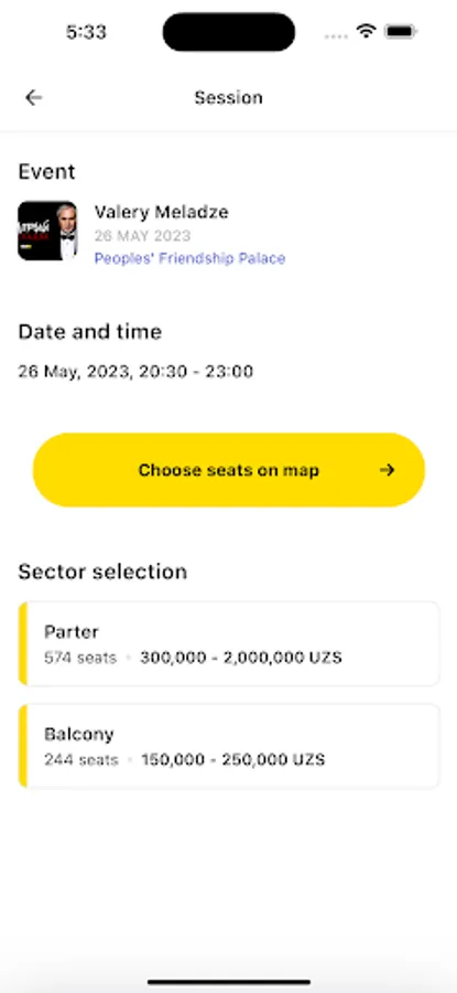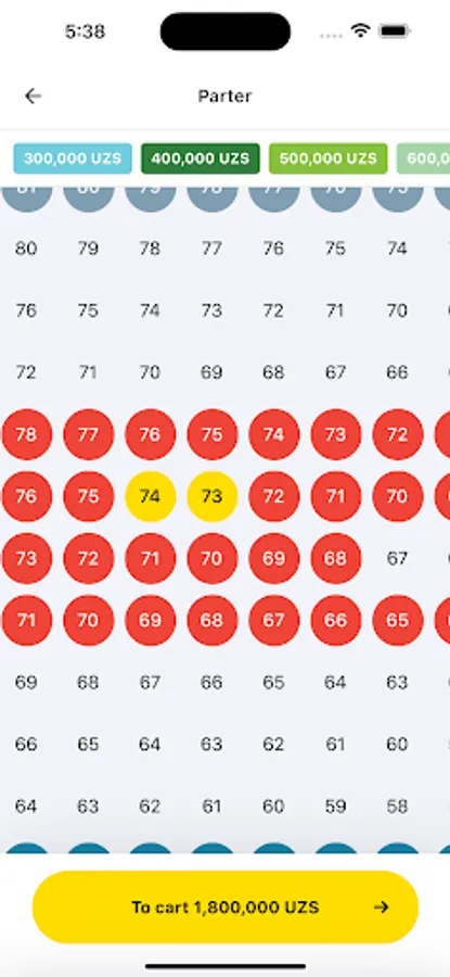 • Convenient selection of tickets for rows and seats, as well as ordinary entrance tickets