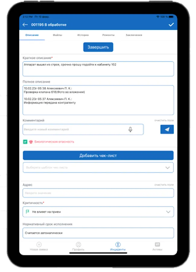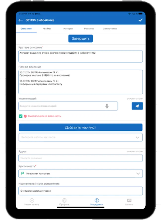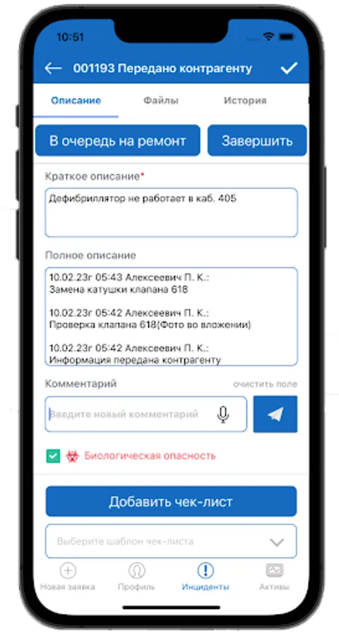 JihozMed is a program for accounting and maintenance of medical equipment. You can create repair requests using your voice, view a list of problems with medical equipment.