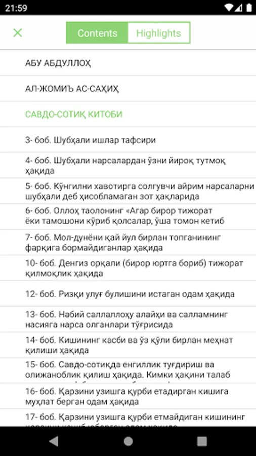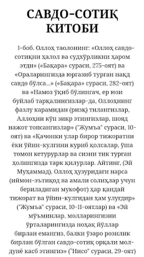 Bismilaxir Roxmanir Roxim. Al-jomi 'As-Saxix kitobi ushbu kitob xalol savdo sotiq haqida va savdo sotiq qanday bo'lish kerak. Savdo sotiq orqasidan xalol luqma topish uchun nimalarga amal qilishimiz kerak ushbu islom kitobi aynan shu haqida. ("Baqara" surasi, 275-oyat) ("Baqara" surasi, 282-oyat) ("Jum'a" surasi, 10-oyat) (Ey Muhammad), (Iymon-e'tiqod va amali solihlar uchun beriladigan mukofot) (“Jum'a” surasi, 10-11- oyatlar) ”(“ Niso ”surasi, 29-oyat) O'king va xalolik yo'lidan adashmang aziz dindoshim sizga yoqimli mutolaba tilab qolaman.