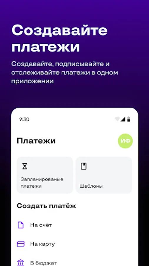 Manage your organization's finances in the app - where and when it's convenient for you. With us it is easy to control balances and transactions on accounts, send transfers to other banks and government organizations.