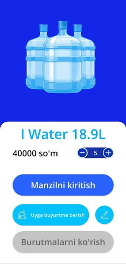 I Water toza va shaffof suvlarini yetkazib berish onlayn tizimi!