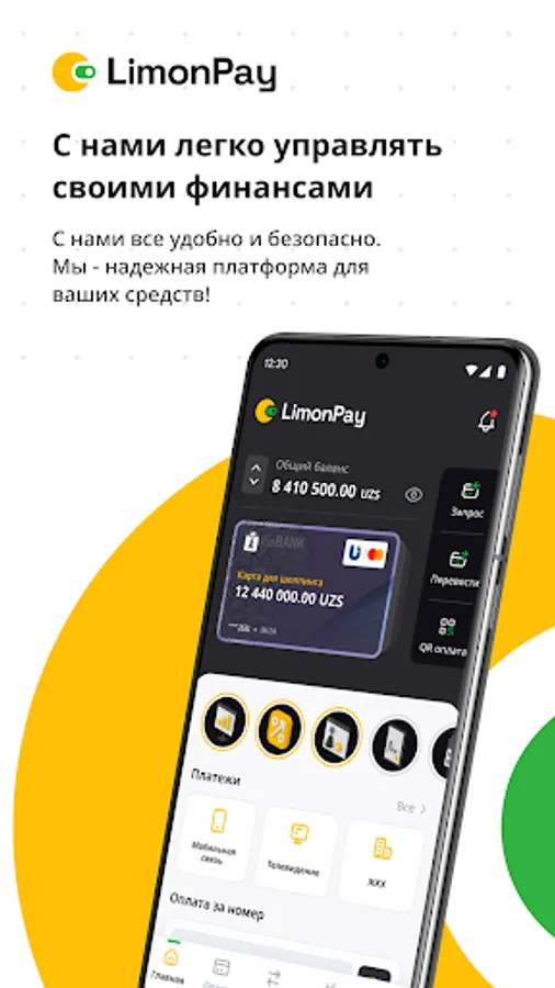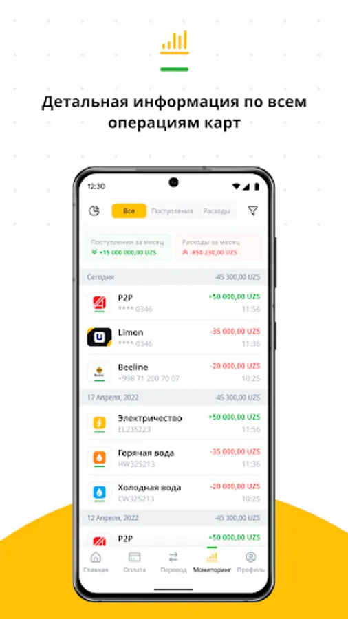 - Full monitoring and control of the finances of your Uzcard and Humo cards