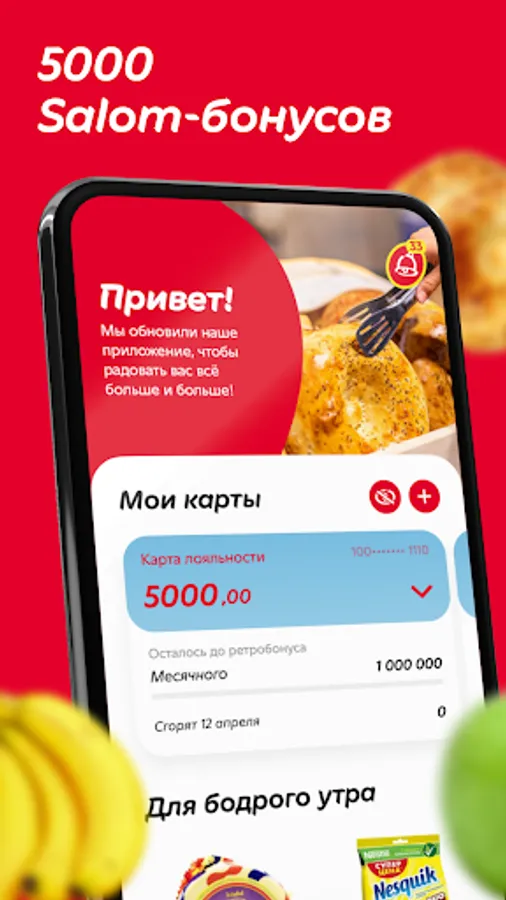 Register a new virtual loyalty card in the Korzinka mobile app and get 5000 salom-bonuses to your account! Bonuses are awarded automatically, immediately after the completion of full registration - start saving or spend them on cool purchases in Korzinka immediately.