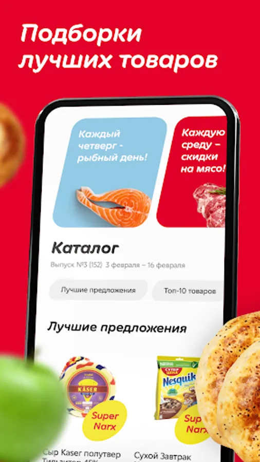 In the mobile app, you can find all the current discounts and promotions at any time, check the prices of the goods you are interested in and find out what is more profitable to buy in Korzinka supermarkets today.