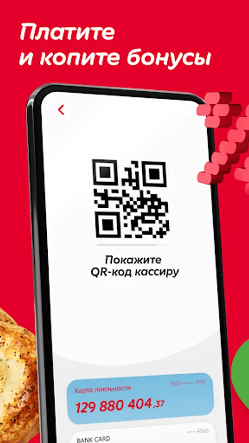 The dynamic QR code is updated every 30 seconds so that only you can pay for purchases and spend bonuses from the mobile app. Even with a one-time access to your QR code, third parties will not be able to use bank cards and loyalty cards linked to the account.