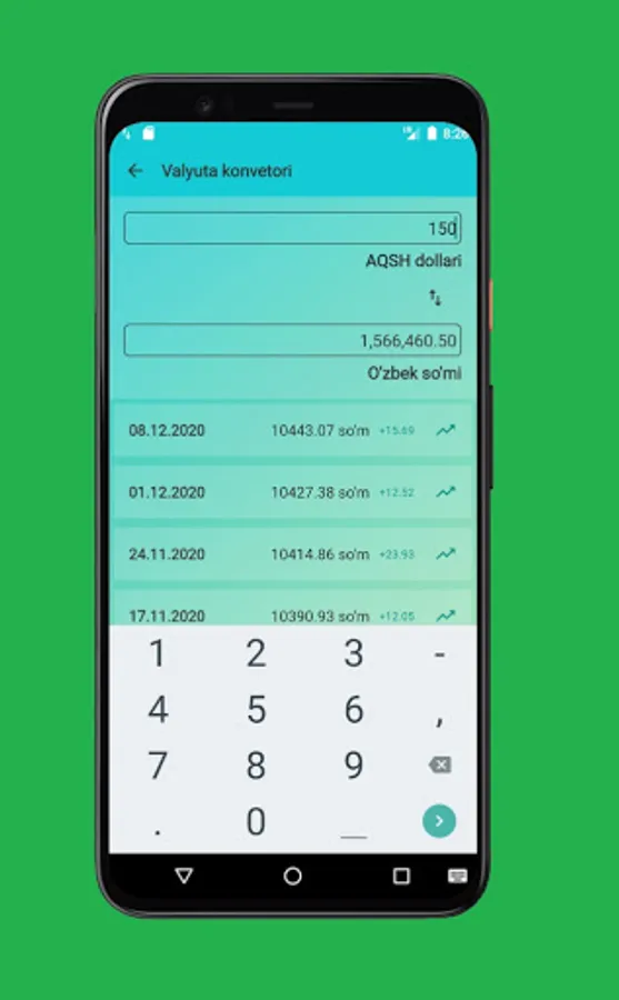 Markaziy bank ma'lumoti asosida Valyutalarni kurlari ko'rsatuvchi va konvertatsiya qiluvchi ochiq kodli ilova