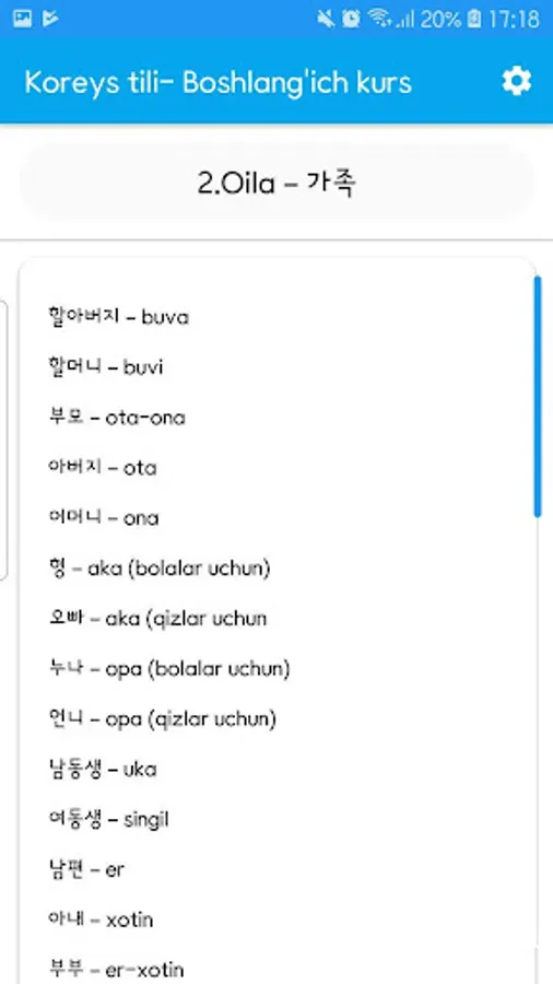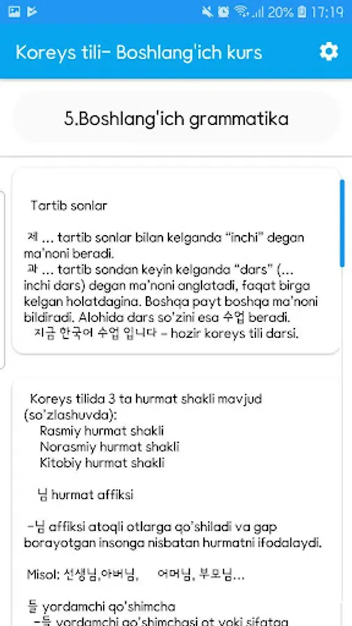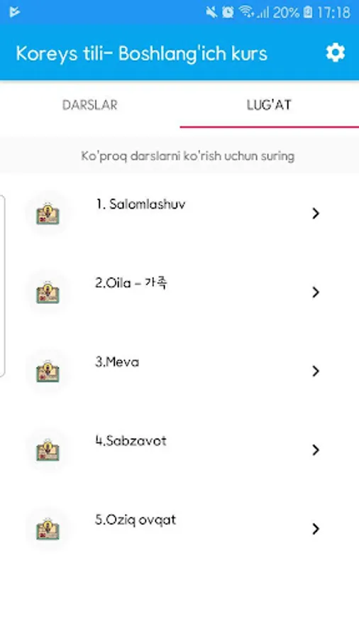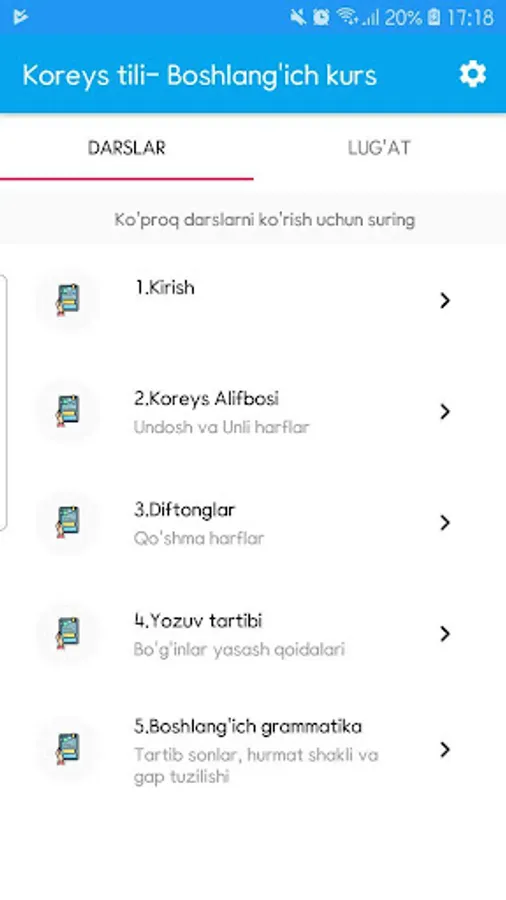 Koreys tili- Boshlang'ich kursi ilovasi orqali siz quyidagilarni o'rganishingiz mumkin: