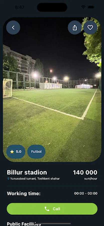 Ushbu maydonim ilovasi o'zingizga yaqin bo'lgan sport komplekslarini topishga yordam beradi.