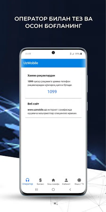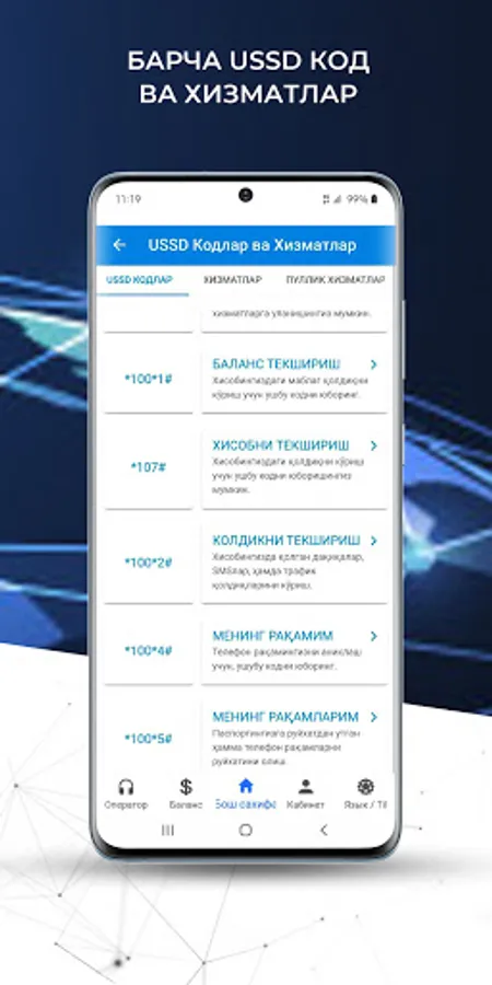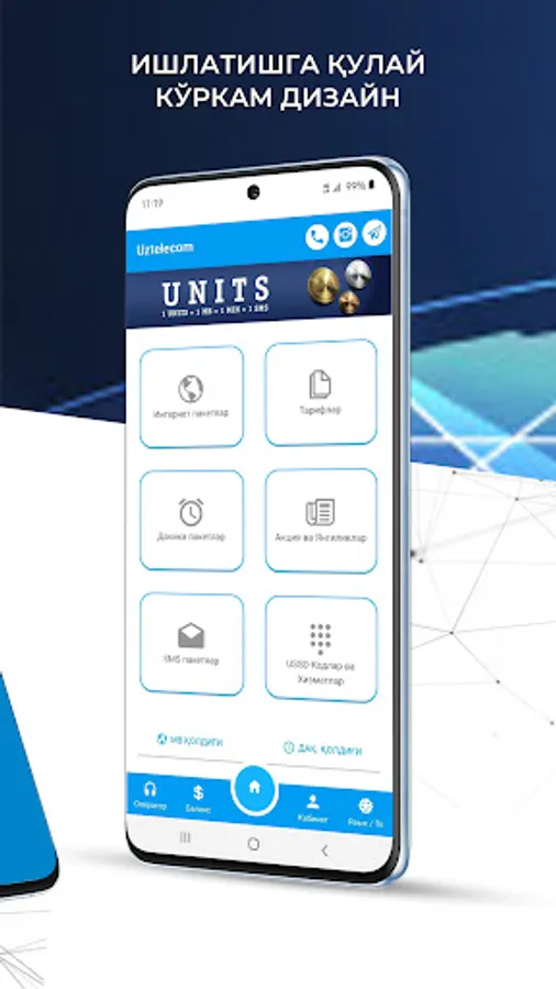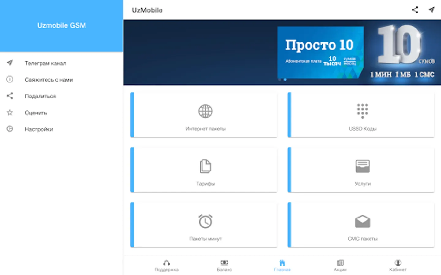 Application allows you to manage your Uzmobile account using USSD codes. You can see, compare and switch to any tariff, buy additional internet traffic, sms or minutes packages. All these without needing any internet or making any phone calls. You can do these all by simply sending Uz Mobile's USSD codes.