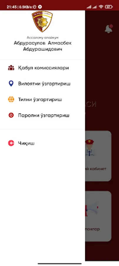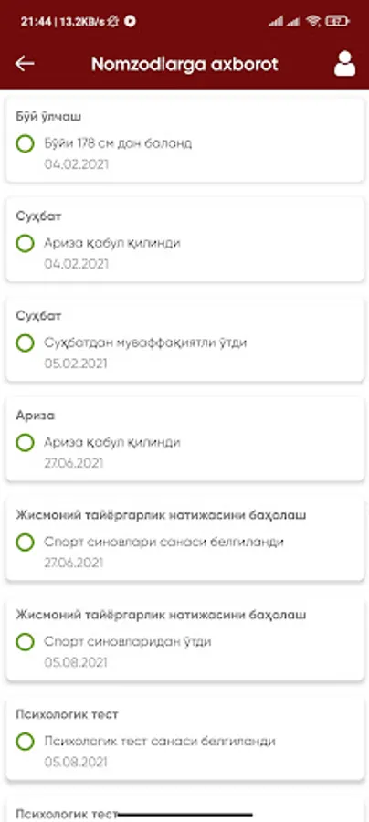 Online monitoring of exam results for recruiting candidates for regional divisions of the General Directorate of Security of the National Guard of the Republic of Uzbekistan