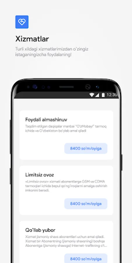 Mazkur ilova Uzmobile Aloqa operatorining mijozlarga qulaylik yaratish maqsadida rasmiy diller "URKENT MEGA SERVIS MCHJ" tomonidan taqdim etilmoqda, sizning shaxsiy hisob varaqangizga va raqamingizga hech qanday zararli tomoni yo'q. Savol va takliflaringizni kutib qolamiz